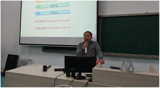 最后,由泉州市教科所林跃明老师作专题报告。林跃明老师用详实的数据,分析了泉州市2019年省质检政治学科整体情况,特别是各个模块存在的优势和问题,同时对泉州各地考试情况作了一些比较。从反馈的问题出发,林老师从备考现状谈起,针对存在问题,给予高三老师高考备考的具体指导。林老师建议老师们在最后的高考冲刺阶段,研究适合学情的答题策略和答题顺序,不断摸索、时间高考备考的方法和策略。培养学生“从多拿一分考试做起”,告诉学生“高考的成功不在于你得多少分,而在于你比别人多得多少分。”总之,在最后冲刺阶段引导学生要力求做到:不浮躁,脚踏实地;抓重点,有的放矢;捕热点,贴近实际;练习技巧,讲求实效。