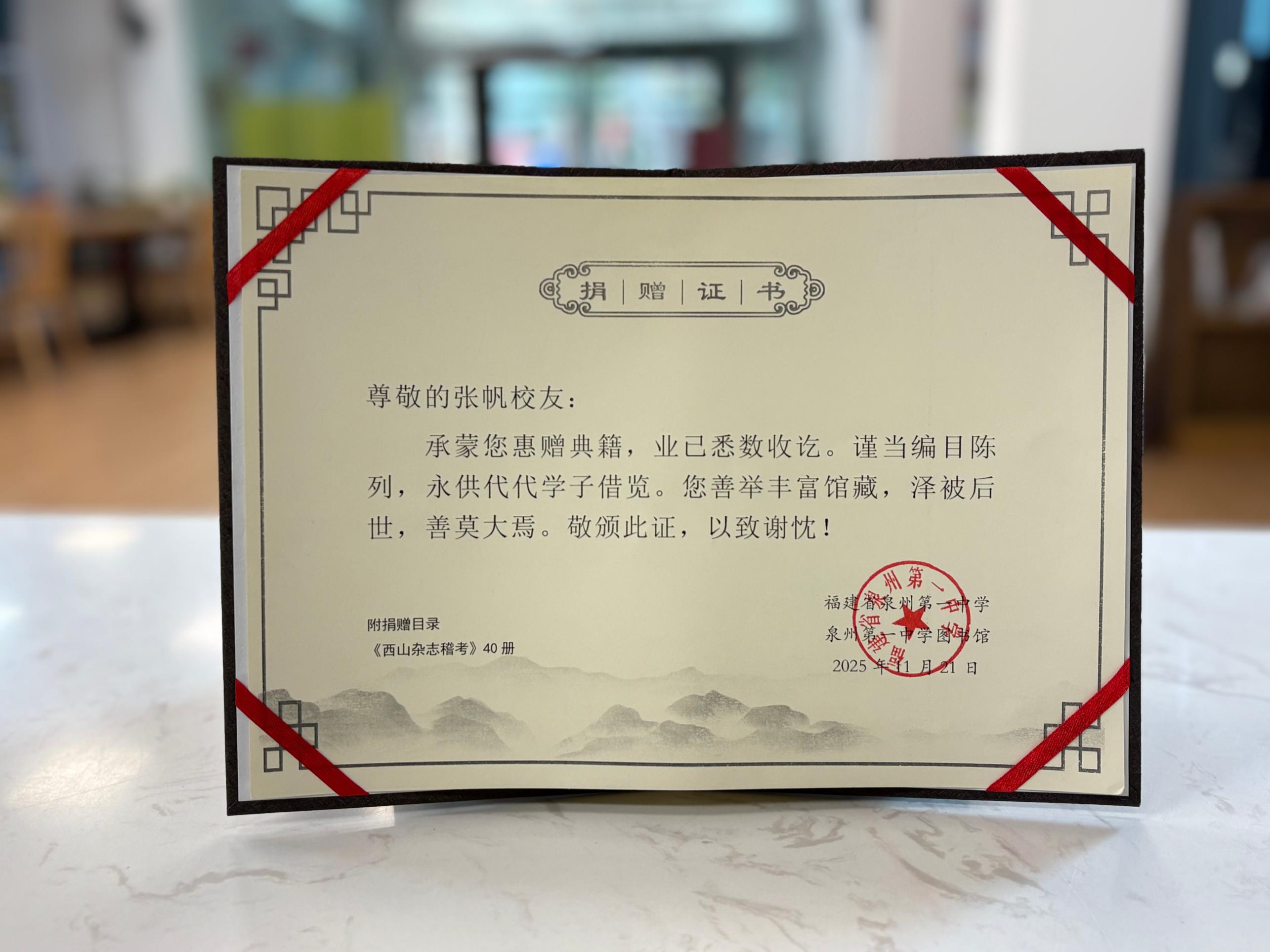 近日,我校热心校友向母校慷慨捐赠了共计40册珍贵的《西山杂志嵇考》。此批赠书将分别收藏于东海校区图书馆与学府校区图书馆,旨在惠及更多师生,为我校的学术研究与校园文化建设注入新的活力。